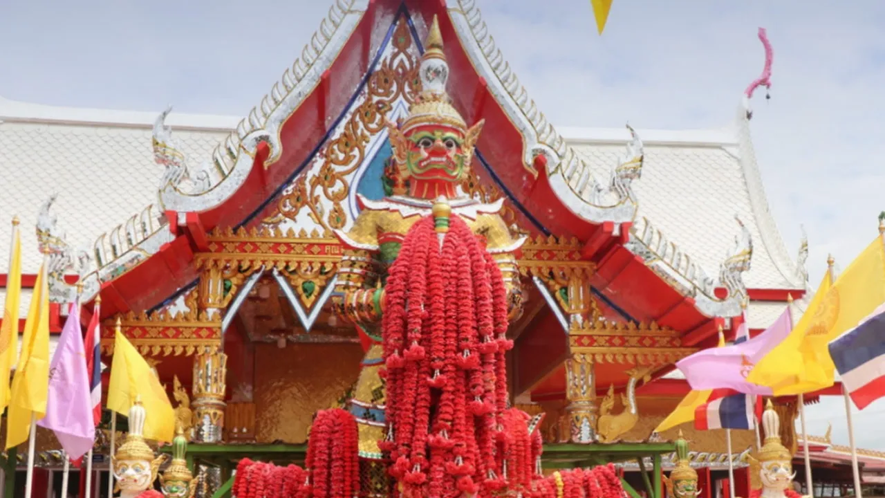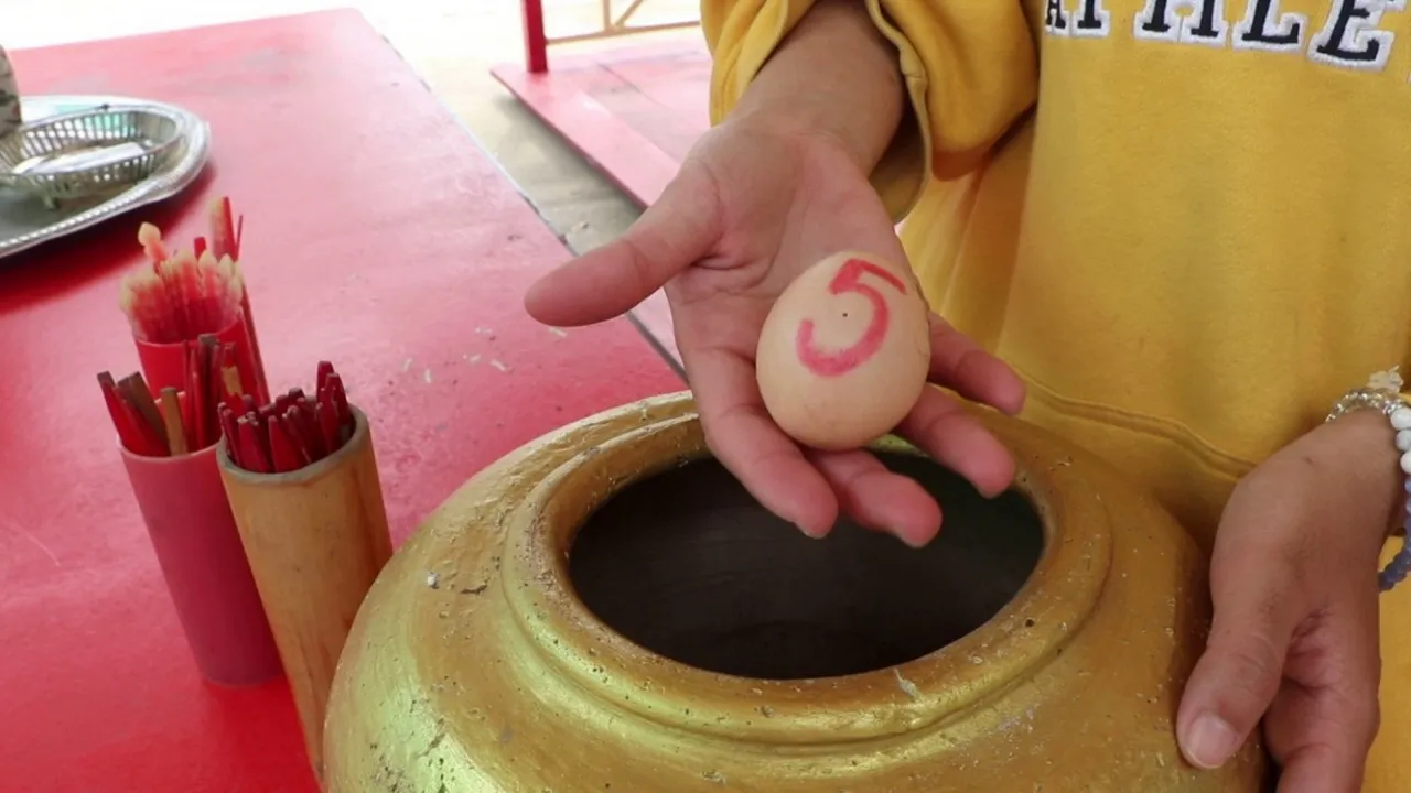 โดยพากันบูชาเครื่องเซ่นไหว้ อาทิ ดอกกุหลาบแดง น้ำแดง ผ้าแดงนำมาเป็นเครื่องสักการะต่อท้าวเวสสุวรรณ พร้อมกันนี้ได้มีการจับลูกปิงปองบรรจุอยู่ในไหที่ตั้งอยู่บริเวณด้านหน้าท้าวเวสสุวรรณ โดยการสุ่มลูกปิงปองขึ้นมา ได้เลข 47 รวมทั้งจุดธูปเสี่ยงทาย ปรากฏตัวเลข 384 ซึ่งหลายคนจะได้นำไปเสี่ยงโชคซื้อสลากกินแบ่งรัฐบาล ในงวดวันที่ 1 สิงหาคม 2567 ที่จะถึงนี้