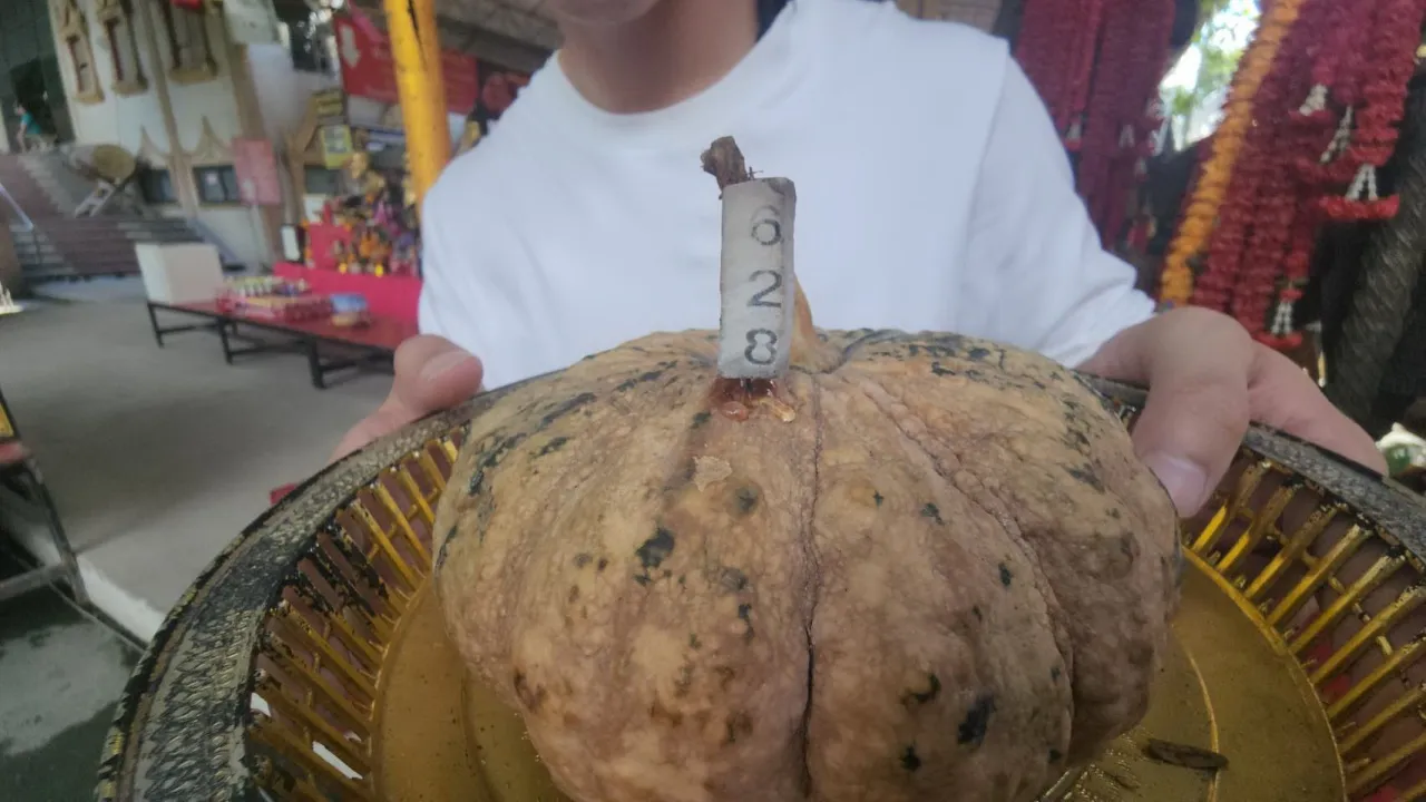 ปาร์ค ภัทรพงศ์ ยังเผยต่อว่า ในเมื่อได้มาไหว้กราบไหว้สิ่งศักดิ์สิทธิ์ท้าวเวสสุวรรณแล้ว ตนเองถือโอกาสขอโชคลาภไปด้วย โดยนำธูปมงคลปักไว้ที่ฟักทองถวายกับองค์ท้าวเวสสุวรรณ พร้อมอธิษฐานขอโชคลาภก้อนโตจากท่าน และบนบานศาลกล่าวด้วยว่า หากได้โชคตามที่ปรารถนา จะชวนเพื่อนศิลปินมาทอดกฐินใหญ่ให้วัด เลี้ยงภัตตาหารเพลพระทั้งวัด จากนั้นนำธูปมงคลไปจุด รอจนกระทั่งธูปหมดดอก ปรากฏเลข 628 ก่อนเดินทางกลับ ได้เดินไปหาซื้อลอตเตอรี่ตามแผงที่วางขายภายในวัด