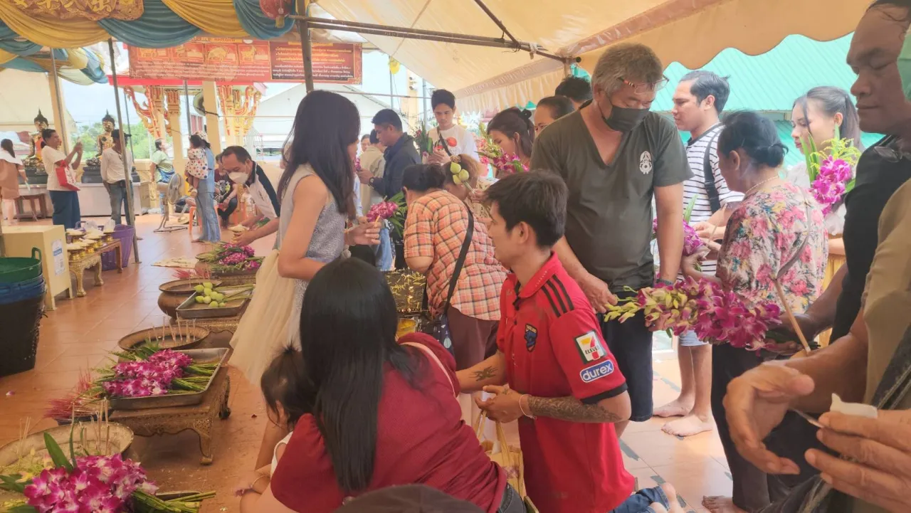 ในวันนี้เช่นกัน มีสาธุชนหลายรายที่นำไข่ไก่สดและหัวหมู มาถวาย หนึ่งในจำนวนนี้ก็คือ นางกนกวรรณ พลวิเชียร อายุ 40 ปี ชาว กทม. อาชีพค้าขาย ได้นำหัวหมูและไข่ไก่สดรวมถึงข้าวสาร อย่างละ 9 วางใส่ถาดมาถวาย เมื่อเสร็จสิ้นก็ถือโอกาสขอโชคจากหลวงพ่อสมหวัง โดยนำกระบอกไม้เซียมซีมาเขย่าให้ไม้หล่น 3 ไม้ ได้เลข 22 - 6 - 17 แล้วยกมือท่วมหัว ขอให้ได้โชคลาภก้อนโต จะนำสิ่งของที่หลวงพ่อสมหวังชอบมาถวายแก้บนให้อย่างเต็มที่
