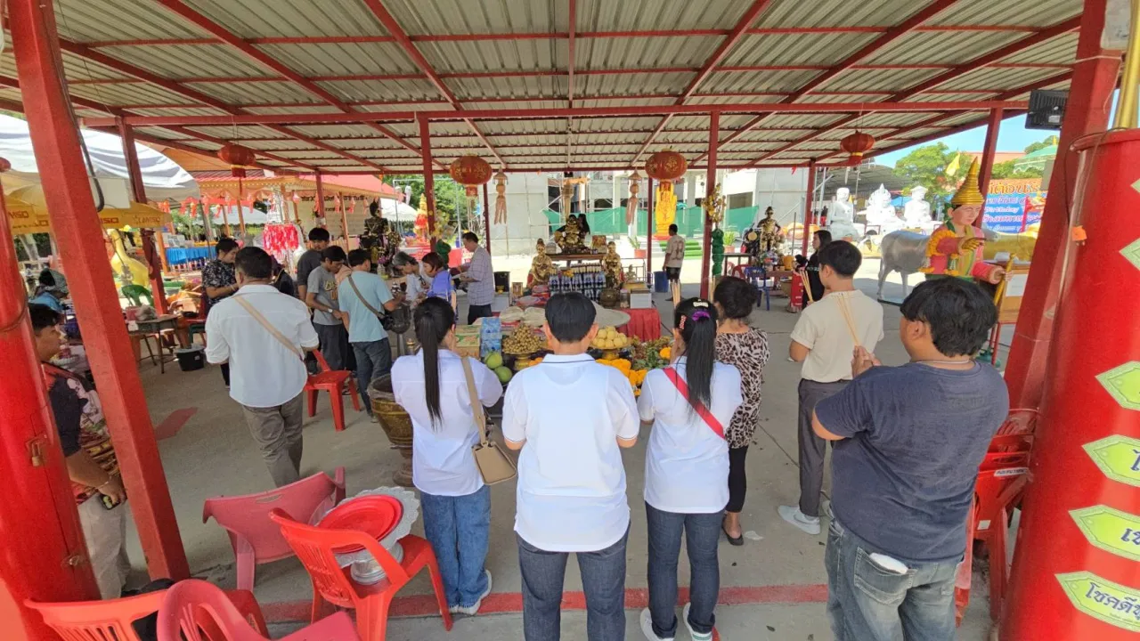 โดยที่บริเวณหลวงพ่อสำเร็จทันใจก้าวหน้า มีนายสุรเดช เฮงดี อายุ 45 ปี อาชีพขายบายศรีดอกไม้ จากปากคลองตลาด นำคณะเพื่อนผู้ค้าดอกไม้ที่มีโชค นำพัดลม 10 ตัว มาถวายหลวงพ่อสำเร็จทันใจก้าวหน้า และนำดอกกุหลาบ พวงมาลัยดาวเรือง ผลไม้มงคล ปลาเผา ไก่ต้ม มาถวายพ่อขุนช้างมหาเศรษฐี