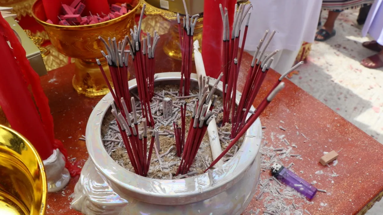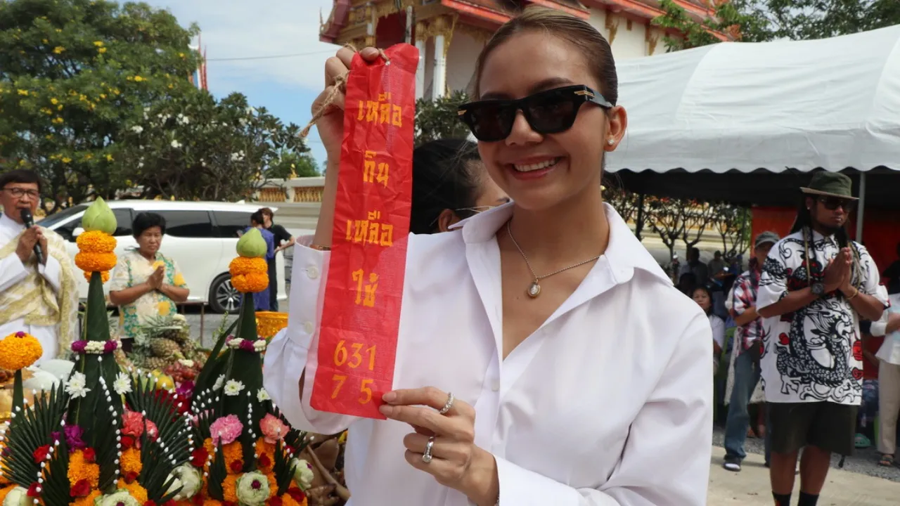 ขณะที่พราหมณ์กำลังทำพิธีบวงสรวง "องค์ท้าวเวสสุวรรณ" พบว่าชายวัย 55 ปี มีอาการองค์ลง และชาวบ้านก็ฮือฮาต่อ เมื่อท่านพระอธิการโรจนศักดิ์ เจ้าอาวาส ได้ขึ้นกระเช้ารถเครนยกขึ้นสูงไปเบิกเนตรท้าวเวสสุวรรณ และไม่พลาดส่องตัวเลขปลายหางประทัด ที่จ๊ะจุดบวงสรวง พบเป็นตัวเลข 631-75 เลขธูป 325 ส่วนที่รถเครนพบเป็นตัวเลข 251 ไม่พลาดนำไปเสี่ยงดวง งวด 1/12/67